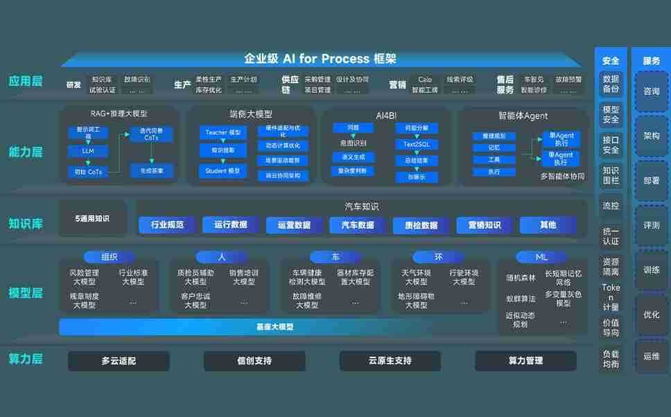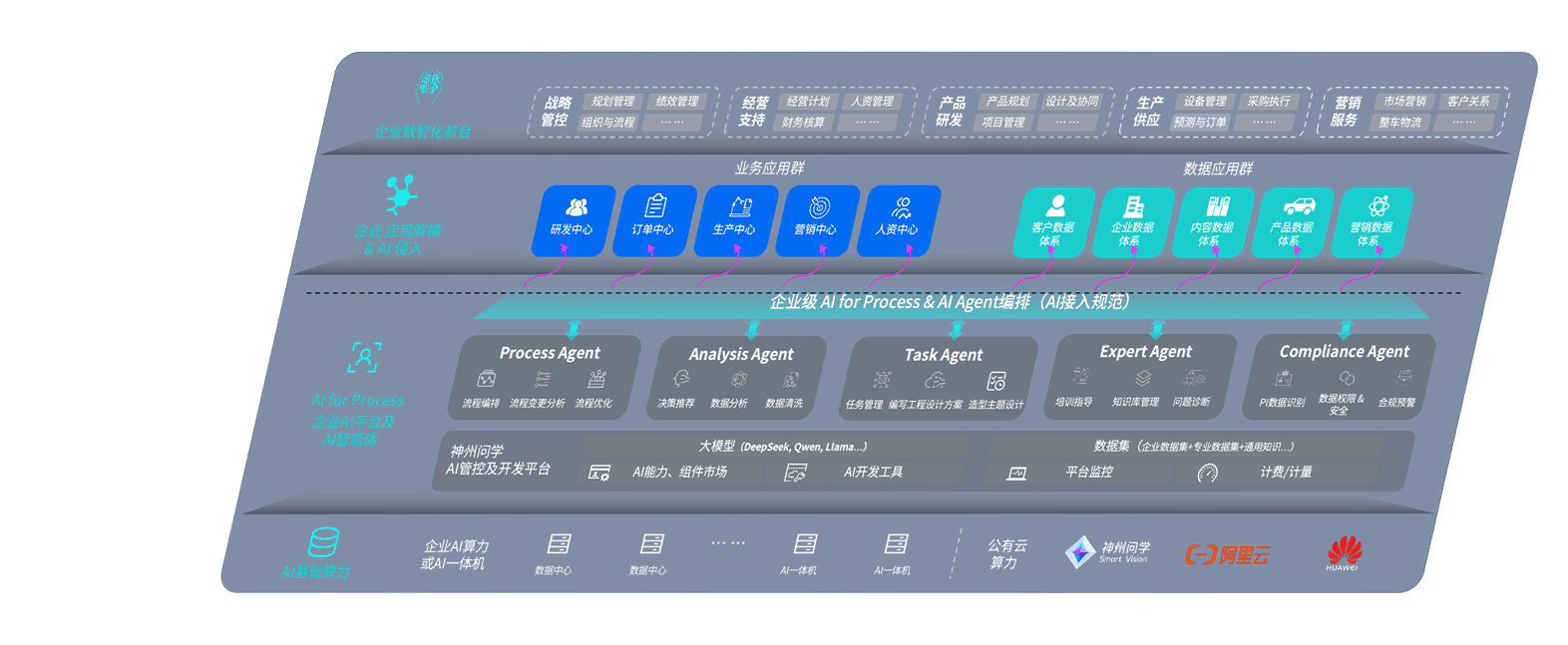 端到端的一站式AI工作空间深度融合了从企业战略规划到日常经营的全流程业务板块,,定向解决车企内部领域多、、部门多、、、链条长、、场景碎片化等难题,,,,支持车企快速构建以AI为核心的生产力写作体系,,实现任务执行与AI能力的无缝集成与交互